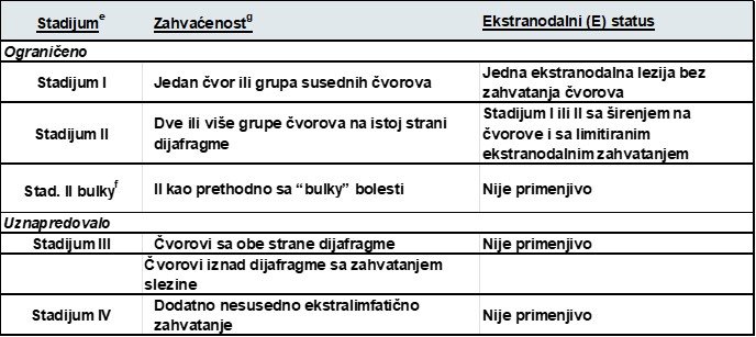 f Histološkim pregledom i brojnim prognostičkim faktorima moguće je odrediti treba li se stadijum II “bulky” lečiti kao ograničena ili uznapredovala bolest.